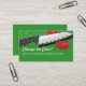 Change the background colour of this decorative chef's knife business card for cooking classes, personal chef, caterer or catering, or other gourmet food or culinary business. Black and grey chef's knife slices a tomato in half. Also makes a nice large gift tag for your homemade food gifts.