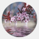Decorative cherry tree blossoms above water with reflection, digital effect