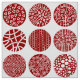 A seamless pattern with a repeating motif made up of nine hand decorated circular spots each with a different original hand drawn design. This pattern can be further customised. Created with a vector graphic the pattern motif can be made larger or smaller. The background colour can also be changed.