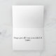 The interior is blank, so really it can be used on any occasion. The card is on sturdy, white paper and the image clear and the colors true.