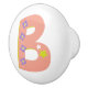 Brighten up a girls bedroom with these decorative personalised monogram letter A hardware knobs. Ideal for a girl who has a name beginnings with A. Coral orange, with purple flowers and white and green star letter art other letters and colours available on request. © Art and design by Sarah Trett for www.mylittleeden.com