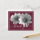 Stunning close-up black and white photograph of two decorative dahlias against a wine coloured background. The flowers covers the front of this postcard which can be used as a thank you card, a birthday card, or any other card of your choice. Customise it with your text and/or pictures to make it one-of-a-kind!
