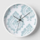 Decorative Damask Art I Duck Egg Blue on White Clock
