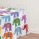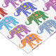 Multi-coloured rows of decorative elephants with background colour you can customise.