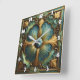 Decorative Floral Panel With Turquoise and Gold Square Wall Clock