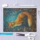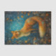 This enchanting tissue paper features a whimsical fox surrounded by ornate floral details in an enchanted forest scene. The rich blue and amber tones give it a magical, storybook quality. This is a full page design, ideal for gift wrapping, seasonal crafting, decoupage, and junk journalling projects.