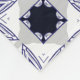 Towels and a washcloth feature a geometric pattern with navy blue stars and circles on a white background, providing a modern and sophisticated look.
