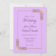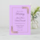 An elegant pink wedding invitation featuring an ornate gold lace frame.