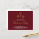 A Christmas party invitation postcard with an illustration of fancy golden snowflakes with elegant crystalline shapes. A dark red background.