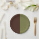 This paper plate has chocolate on one side and olive on the other side. Half and half colored paper plate. These are great for wedding, showers or even graduation.