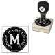 A unique hand lettered decorative type style monogram with name and initial. Stamp your personal items, business items and correspondence with this unique rubber stamp.