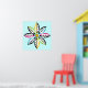 Decorative Leaves-Flower modern, abstract poster design, featuring a flower its petals made of colourful leaves with yellow centre. Two of them in black, yellow, two in black, aqua/turquoise, two in black, fuchsia pink and two in black, lime green. In each of them there are smaller white leaves. This abstract nature inspired square poster has a retro feel to it and is completely customisable and the light blue background can be changed. Primitive, folk art style.