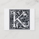 Decorative Letter "K" Woodcut Woodblock Initial Business Card