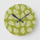 Decorative Lime Green Leaves Pattern Round Clock