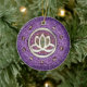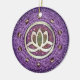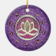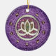 Purple ornament in a crochet, stone-decorated look with a silver lotus symbol in the centre