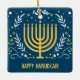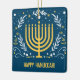 Make sure you include Hanukkah while you're celebrating Christmas or add it to your Chanukah decor. This decorative Hanukkah ornament features a gold menorah surrounded by leaves, stars, and swirls against a rich blue background. Add your own message on the reverse or delete it to leave it blank. Great for an interfaith family or friend. Available with matching products.
