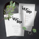 A bold, decorative font immediately catches your eye and sets the tone for most pieces of this modern, minimalist wedding suite. The wedding invitation shown here, with it's informal, 'We Do', provides the details of your big day, all while offering a sneak peek of your wedding esthetic and style as a couple. Search ID887 to see all the products in this wedding set.