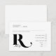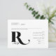 A bold, decorative font immediately catches your eye and sets the tone for most pieces of this modern, minimalist wedding suite. The wedding RSVP card shown here, provides space for name and number attending as well as menu choices, all while offering a sneak peek of your wedding aesthetic and style as a couple. A heart-accented ambersand on the back adds an additional fun accent. Search ID887 to see all the products in this wedding set.
