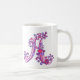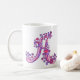 Decorative hand drawn capital Monogram A mug. Pretty hand drawn doodled design featuring hearts and flowers in purple and pink shades. © Unique typography art and design by Sarah Trett. www.sarahtrett.com for www.mylittleeden.com on zazzle