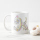Decorative hand drawn capital Monogram K mug. Pretty hand drawn doodled design featuring hearts and flowers. © Unique typography art and design by Sarah Trett. www.sarahtrett.com for www.mylittleeden.com on zazzle