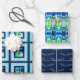 Stylish designed paper gift wrap sheets, three different patterns in shades of blues, the happy birthday text on the 3rd sheet can be switched to any message to suit any occasion.