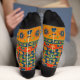 I love these Mona Lisa Christmas Socks! They are soft and very comfortable. The print looks great, on all sides including the most stretched area around my calf.