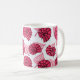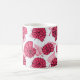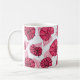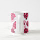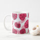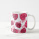 Nature lover mug with a pattern created from an ink drawing of abstract pink snail shells with decorative white dots in from of leaves.