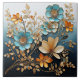 Decorative porcelain-look flower pattern in golden ecru and soft turquoise.