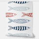 A red, blue and white decorative modern design featuring fish sardines. A nautical inspired design illustration perfect for Summer. The perfect Summer party décor or beach home décor for your beach house. Ideal for anyone who loves fish, sardines, ocean and nautical themed illustrations the seaside and Summer themed designs.