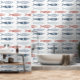 Decorative Red & Blue Sardines Fish Pattern Wallpaper
