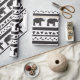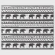 Decorative repeat seamless pattern with hand drawn elephants lines and triangles. Hand painted black stripes and triangles on white background.
