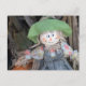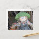 This close-up of a mini decorative scarecrow wearing blue overalls and a green hat while sitting atop a pumpkin covers the front of a horizontal full-bleed photo postcard. This adorable scarecrow image works well for a general fall/autumn theme as well as for Halloween and Thanksgiving specifically. This postcard can easily be customised to add text or change the background colour. An alternative vertical photo postcard of this image is also available in my store.