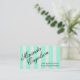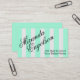 An attention getting business card design featuring your name in a lovely script font over a bright turquoise stripe pattern. Add your details by replacing the sample text shown in the design template.
