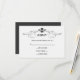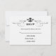 These Decorative Scroll Fleur de Lis Wedding RSVP Cards feature a fancy yet discreet scroll with a Fleur de Lis symbol at the top. Enter your wedding response date by filling in the template. The back of the invitation is charcoal black, with a white Fleur de Lis scroll at the bottom. The back has a template option to add more text. If you prefer not to have text on the back, simply delete it.