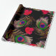 Decorative seamless pattern with beautiful watercolor roses and peacock feathers. Romantic floral print.