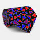 An original design made up mostly of colour decorated shapes, mostly triangles, but also with some rectangles and circles in red and blue edged with white.