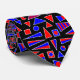 An original design made up mostly of colour decorated shapes, mostly triangles, but also with some rectangles and circles in red and blue edged with white.