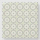 A decorative coaster featuring a symmetrical geometric pattern with blue, white, and brown hues shown from the front and back on a gray background.