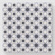 A decorative coaster featuring a symmetrical geometric pattern with blue, white, and brown hues shown from the front and back on a gray background.