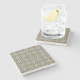 A decorative coaster featuring a symmetrical geometric pattern with blue, white, and brown hues shown from the front and back on a gray background.
