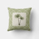 Pillow with palm trees and bamboo lattice design on green background. See all the coordinating pillow designs at Sandy Feet Studios.