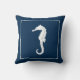 White sea horse on navy blue background. See all the coordinating pillow designs and art prints at Sandy Feet Studios.
