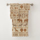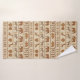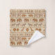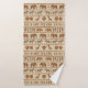 This eye-catching bath towel design features intricately patterned elephants, zebras, giraffes, rhinoceroses, lions, and monkeys arranged in stylized horizontal bands. Each animal and decorative border is filled with geometric, tribal-inspired markings, creating the sophisticated look of hand-stamped or woven textile art. The rich, earthy palette of browns and tans against a textured light background offers a warm, mature, and gender-neutral aesthetic, perfect for adding an authentic, cozy bohemian touch to any bathroom. Search ID1243 to see all the products in this design set. Note: design adapted from generative content.