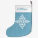 Decorative White Snowflake On Light Blue And Name Small Christmas Stocking