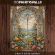 A dreamy countryside view from a stained glass window and lot of flowers. A perfect design on quality tissue paper for your furniture up-cycling or restyling.