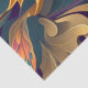 The image shows an intricate and colourful abstract pattern with swirling, leaf-like shapes. The design features a vibrant palette of colours including shades of orange, pink, teal, and cream, set against a dark background. The pattern is highly detailed, with each element seamlessly flowing into the next, creating a sense of movement and dynamism. This type of design is interesting and relevant for its artistic value and could be used in various applications such as wallpaper, fabric prints, or digital art.
