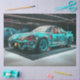 "Vibrant abstract car design art," "Turquoise car bold artistic aesthetic," "Custom modified car unique patterns," "Creative automotive design showroom setting," "Colourful splashes modern car artwork," "Dynamic turquoise wheels creative appearance," "Heavily modified car artistic textures," "One-of-a-kind abstract car style," "Art-inspired car design showroom scene," "Distinct automotive creativity bold visuals.