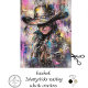 The image is an abstract painting of a cowgirl. The artwork features vibrant, energetic colours and bold brushstrokes, creating a dynamic and expressive composition. The cowgirl is depicted wearing a cowboy hat and a bandanna, with the figure partially abstracted and blended into the colourful background. The background consists of a mix of bright hues such as red, yellow, blue, and green, adding depth and texture to the piece. The overall atmosphere of the painting is lively and spirited, capturing the essence of the cowgirl's adventurous and free-spirited nature.