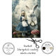 This hauntingly beautiful Alice in Wonderland-inspired artwork features a young girl dressed in a vintage blue Victorian dress with a white apron, standing beside an oversized white rabbit holding a pocket watch. The mystical forest setting, surrounded by towering toadstools and misty trees, creates an ethereal, fairytale atmosphere. The girl's solemn expression and the rabbit's watchful gaze add an air of mystery and timeless wonder. With a blend of fantasy, gothic, and storybook aesthetics, this piece is perfect for lovers of dark fairytales, surrealism, and whimsical fantasy art.