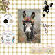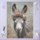 Bold donkey art print, artistic farm animal illustration, RHDesigns mixed media donkey image, floral crown animal collage, abstract barnyard décor, pastel donkey with wildflowers, expressive animal artwork, whimsical decoupage paper, surreal countryside scene, donkey with cursive background